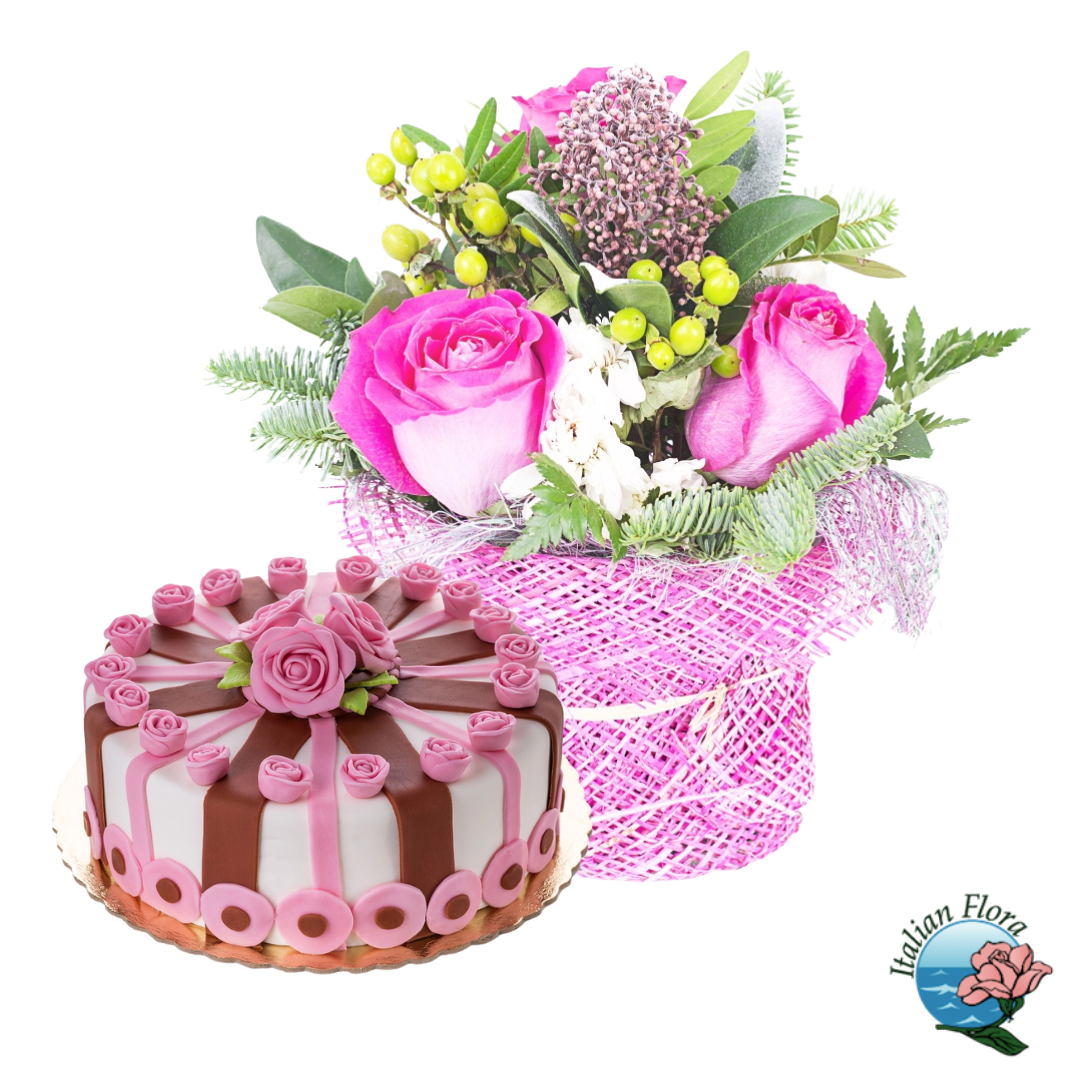 Questo set esclusivo di Italflora accosta l’eleganza senza tempo delle rose rosa alla purezza dei fiori bianchi, completando l’esperienza con una torta artigianale decorata nei toni del rosa.