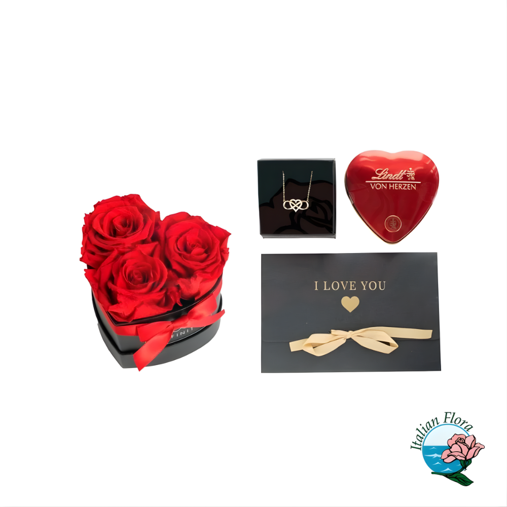 Il set regalo con la nostra piccola scatola a cuore è un meraviglioso regalo romantico.