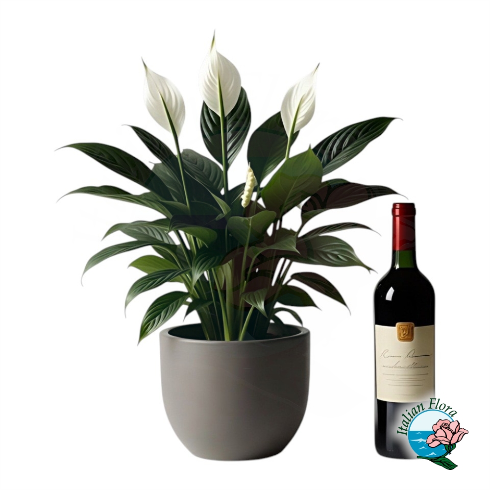 Questa esclusiva combinazione firmata Italflora unisce la bellezza purificatrice dello Spatifillo all’intensità di un vino rosso selezionato, creata per chi desidera fare un regalo sofisticato e di grande impatto.